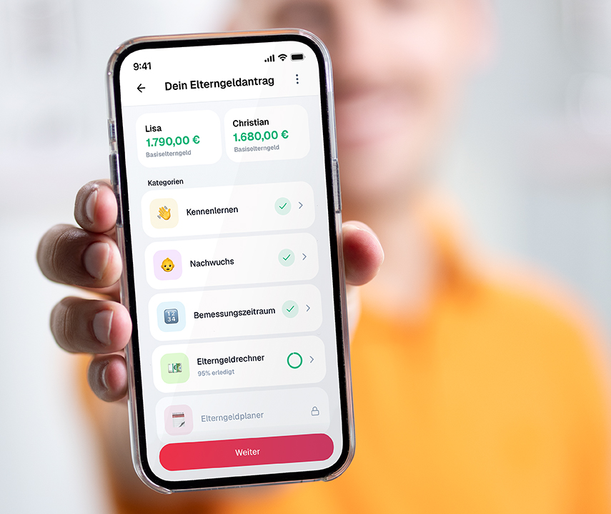 Wir arbeiten im Hintergrund an unserer App „Elterngeld Buddy“, mit der du dein Elterngeld einfach und fehlerfrei beantragen kannst. Durch das verständliche Frage-Antwort-Prinzip wird dein Elterngeldantrag automatisch generiert, ohne dass du dich mit Formularen herumschlagen musst.
